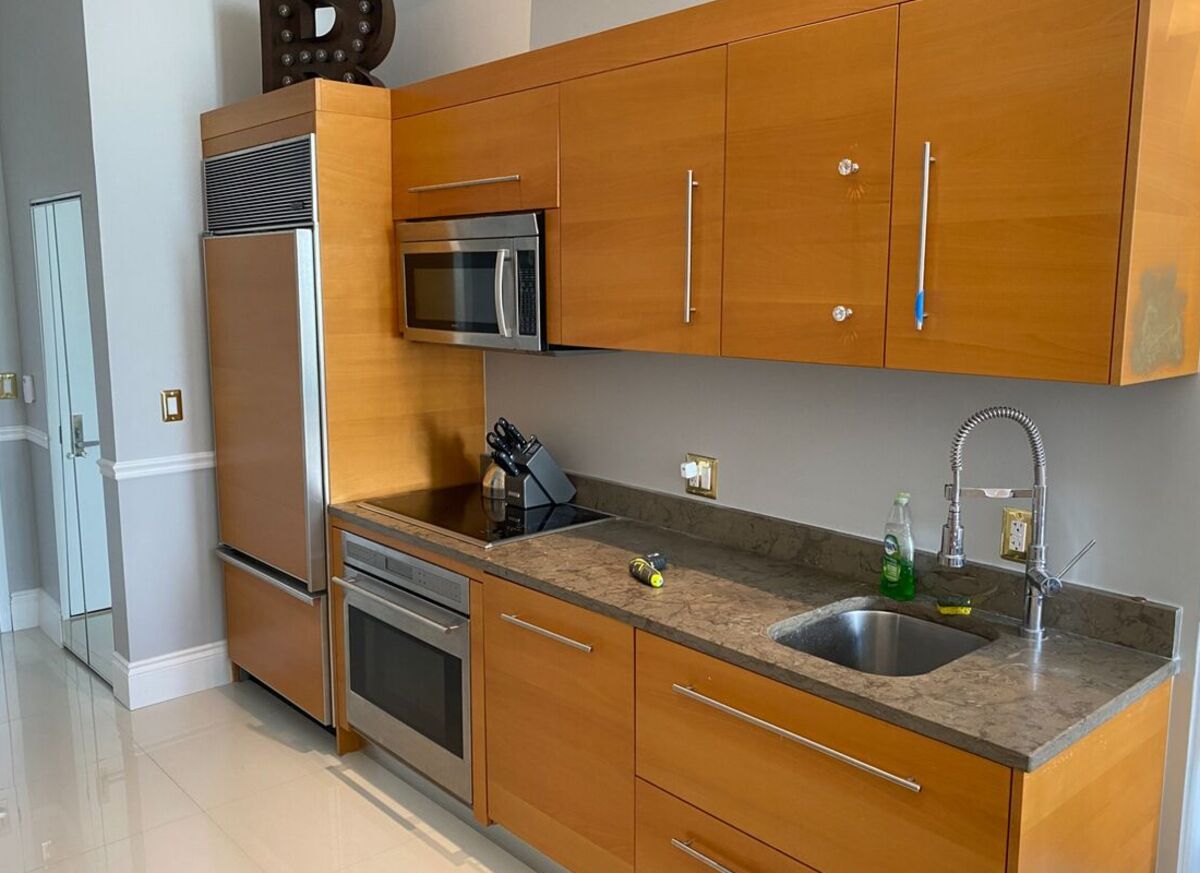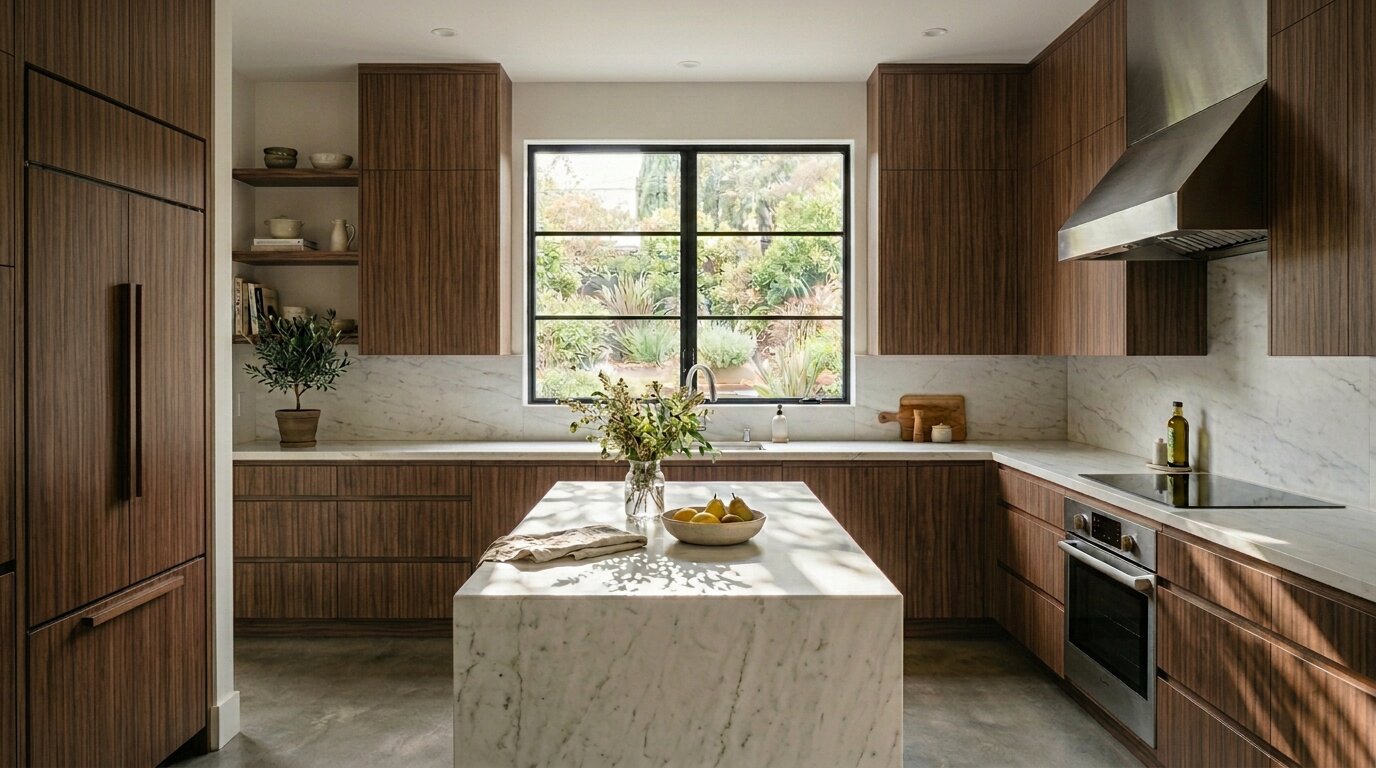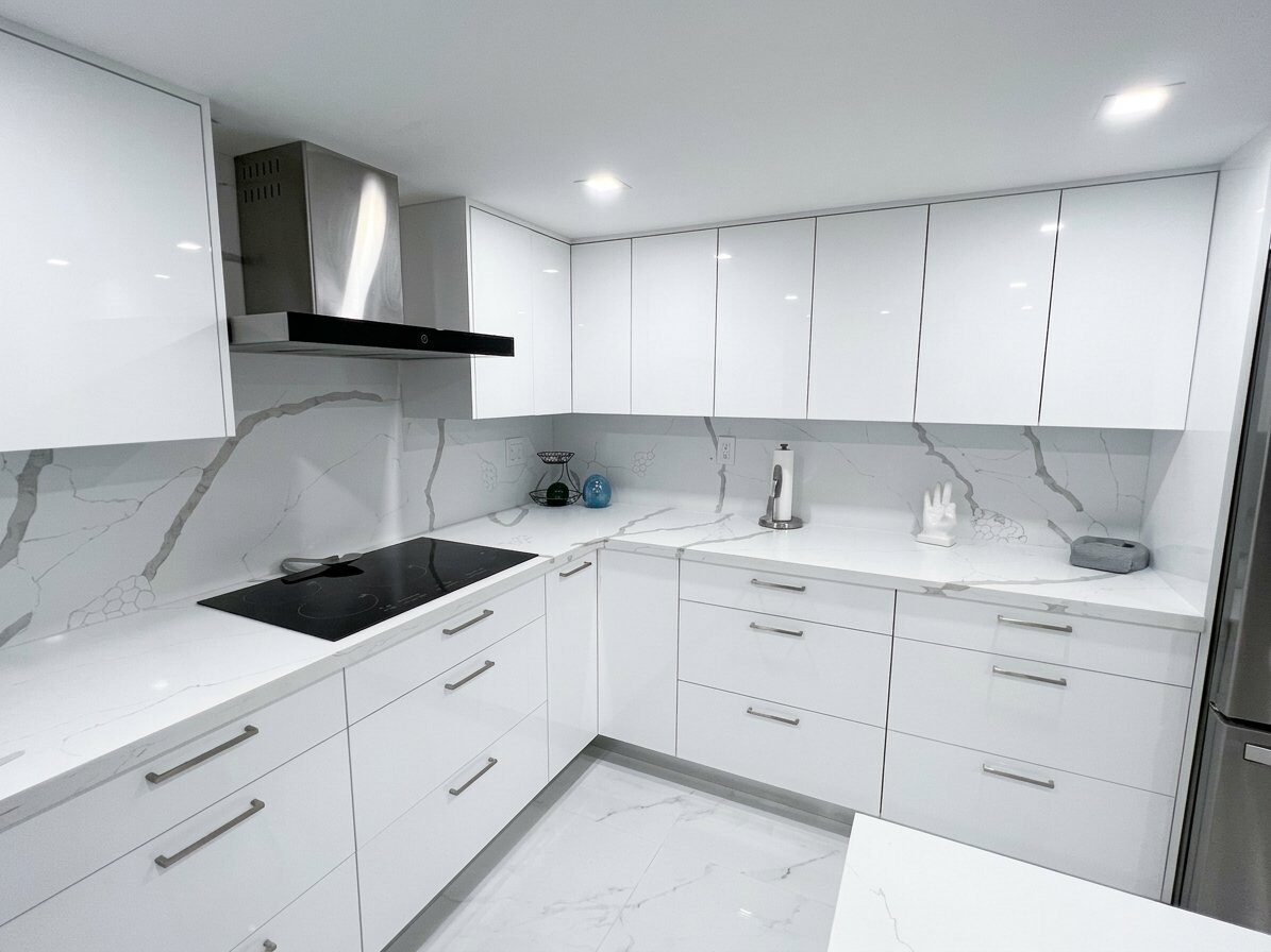 Before & after transformations of kitchens resurfaced with professional-gradevinyl wrapping – no demolition, no downtime.
